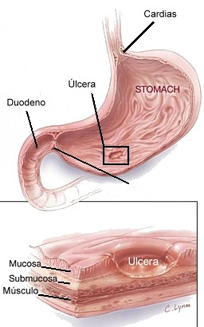 de la mucosa gástrica y que aumentan las secreciones ácidas
